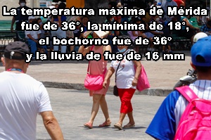 MÁXIMAS: Yucatán, 36º C, Mérida Norte y Nororiente; México, 36º C, Mérida, Yucatán