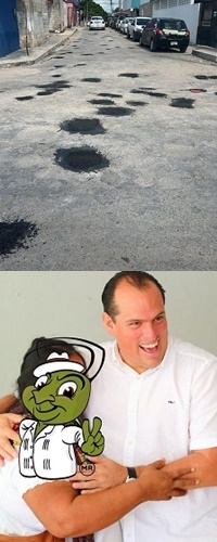 TIZIMÍN, Yucatán, jueves 16/10/25.- El tiro le salió por la culata al alcalde “Lata de Gas”, pues intentó aprovechar la visita del gobernador para mostrar que el bacheo de las calles avanza, pero, pero la única que hizo le quedó tan mal que lo aplastaron con críticas y burlas.