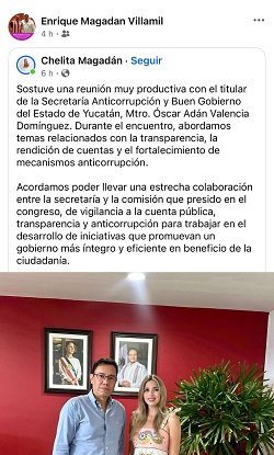 BUSCA PROTECCION: Al enterrarse de la denuncia en su contra, horas después la diputada María Ester Magadan Alonzo se reunió a puerta cerrada con Óscar Adán Valencia Domínguez, titular de la Secretaría anticorrupción y buen gobierno del Estado, Yucatán, para exigir que no la investiguen.