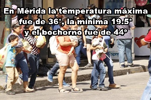 MÉRIDA: Máxima, 36° C, Norte; mínima 19.5°, en el Norte; bochorno, 44º