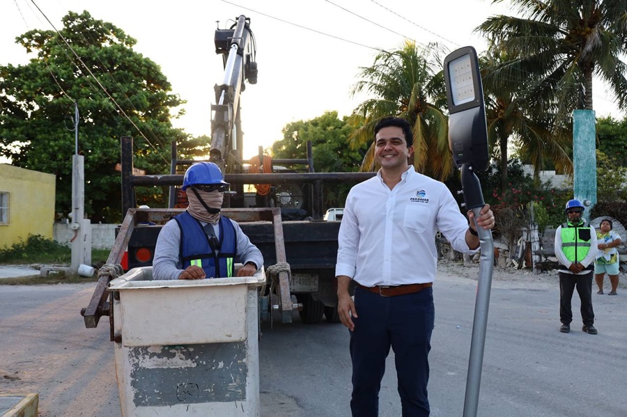 PROGRESO, Yucatán, lunes 27/10/2025.— El Ayuntamiento de Progreso, encabezado por el alcalde Erik Rihani González, continúa fortaleciendo la infraestructura urbana en las comisarías del municipio. En esta ocasión, se llevaron a cabo trabajos de mejoramiento del alumbrado público en Chicxulub, con el propósito de brindar mayor seguridad y bienestar a las familias de la comunidad.