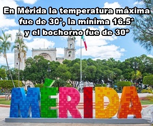 MÉRIDA: Máxima, 30° C, Oriente; mínima 16.5°, en el Norte; bochorno, 30º