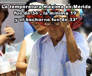 MÉRIDA: Máxima, 34° C, Oriente y Poniente; mínima 19°, Norte; bochorno, 33º