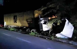 El tráilero circulaba de oriente a poniente, pero debido al exceso de velocidad perdió el control de su gran camión, invadió el carril contrario y se salió de la carpeta asfáltica; avanzó poco más de 30 metros dentro de la maleza, hasta que un árbol detuvo su loca carrera, pues se estrelló contra él.