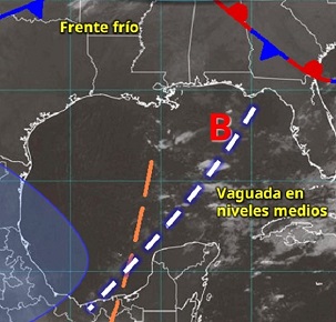 Para hoy viernes, debido a los efectos de una vaguada en Yucatán se espera ambiente caluroso, con temperaturas máximas de 33 a 35º C y bochorno de 37º.