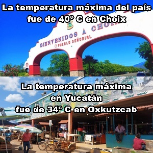 MÁXIMAS: Yucatán, 34º C, Oxkutzcab; México, 40º C, Choix, Sinaloa