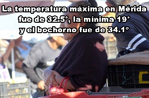 MÉRIDA: Máxima, 32.5° C, Poniente; mínima 19°, Norte; bochorno, 34.1º