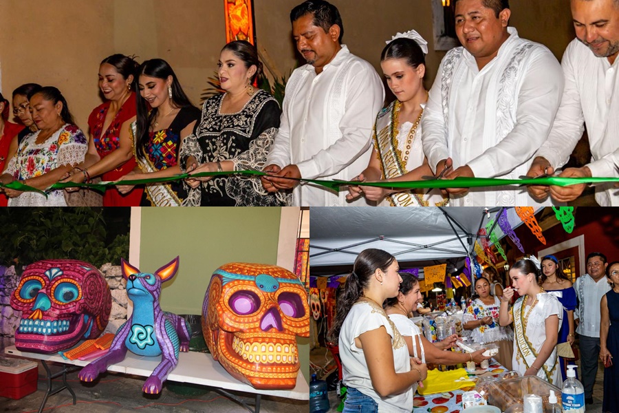 VALLADOLID, Yucatán, lunes 10/11/2025.- Con el corte del listón inaugural a cargo del presidente municipal, Homero Novelo Burgos, comenzó el 1er Festival Gastronómico “Sabores del Más Allá”, que llenó de tradición, color y sabor la Calzada de los Frailes.