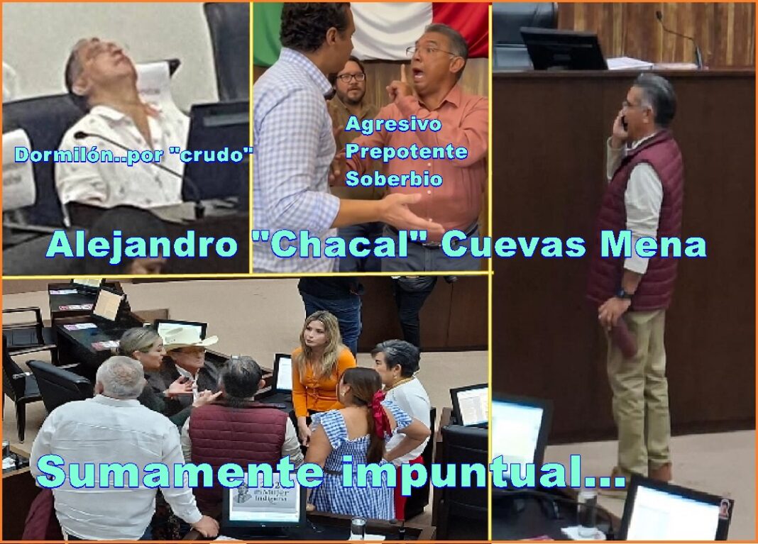 MÉRIDA, Yucatán, viernes 14/11/2025.- Además de ebrio, agresivo y dormilón, el chacal Alejandro Cuevas Mena es tremendamente impuntual: Desde que encabeza la presidencia de la mesa directiva del Congreso del Estado las sesiones comienzan cada vez más tarde.