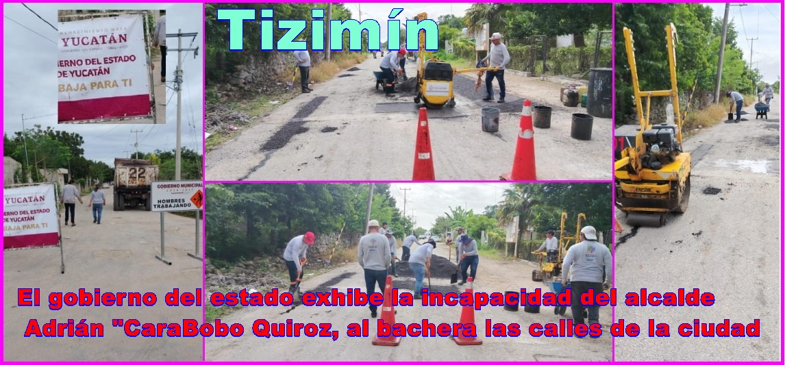 TIZIMÍN, Yucatán, viernes 14/11/25.- El alcalde adrián “CaraBobo” Quiroz admitió que, por mal manejo del dinero, unos dicen que presuntamente se lo roba, NO pudo con el bacheo de las calles y tuvo que recurrir al gobierno del estado.