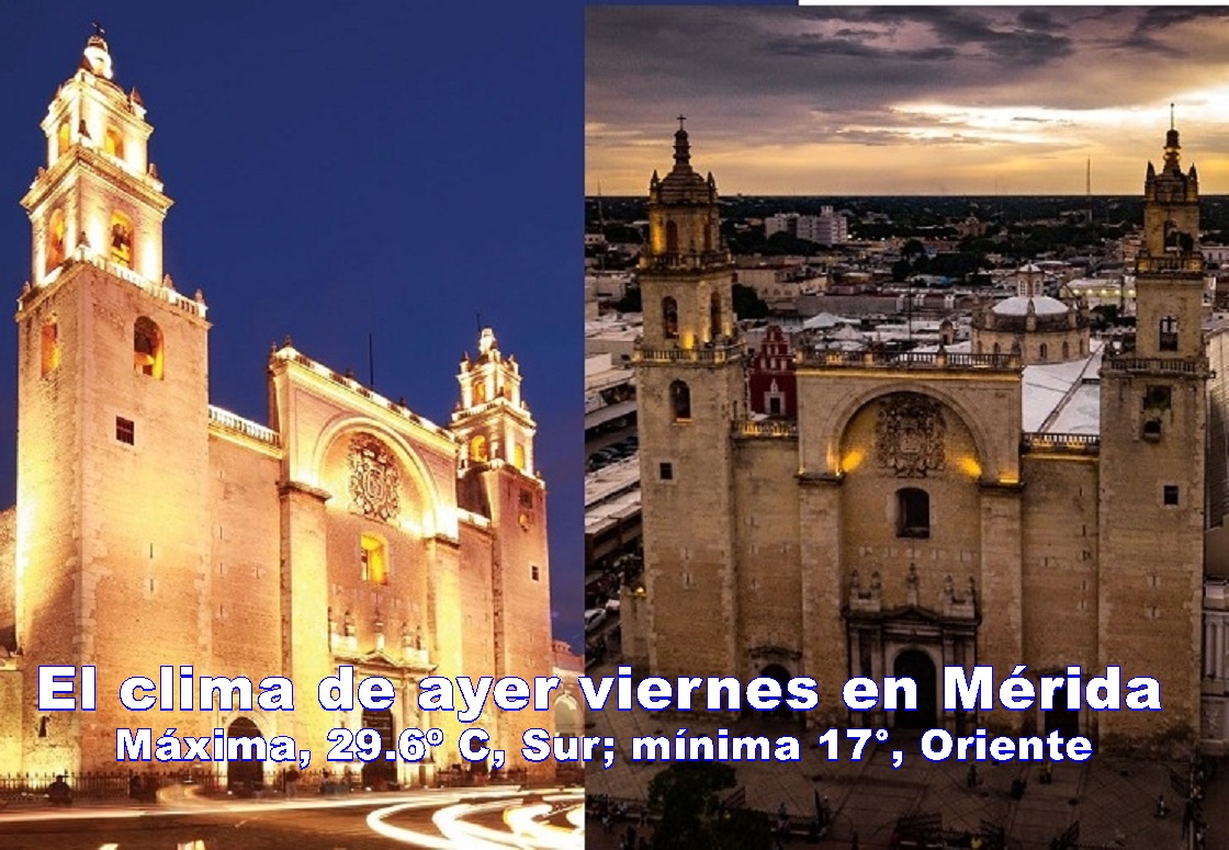MÉRIDA: Máxima, 29.6º C, Sur; mínima 17°, Oriente