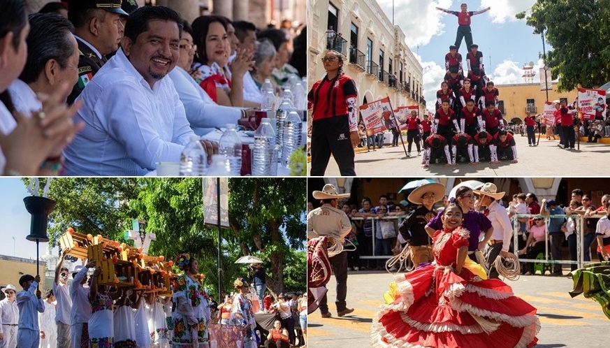 El presidente municipal, Homero Novelo Burgos, junto con su esposa, María Teresa Martín López, así como autoridades civiles y militares observaron también desde el presídium.