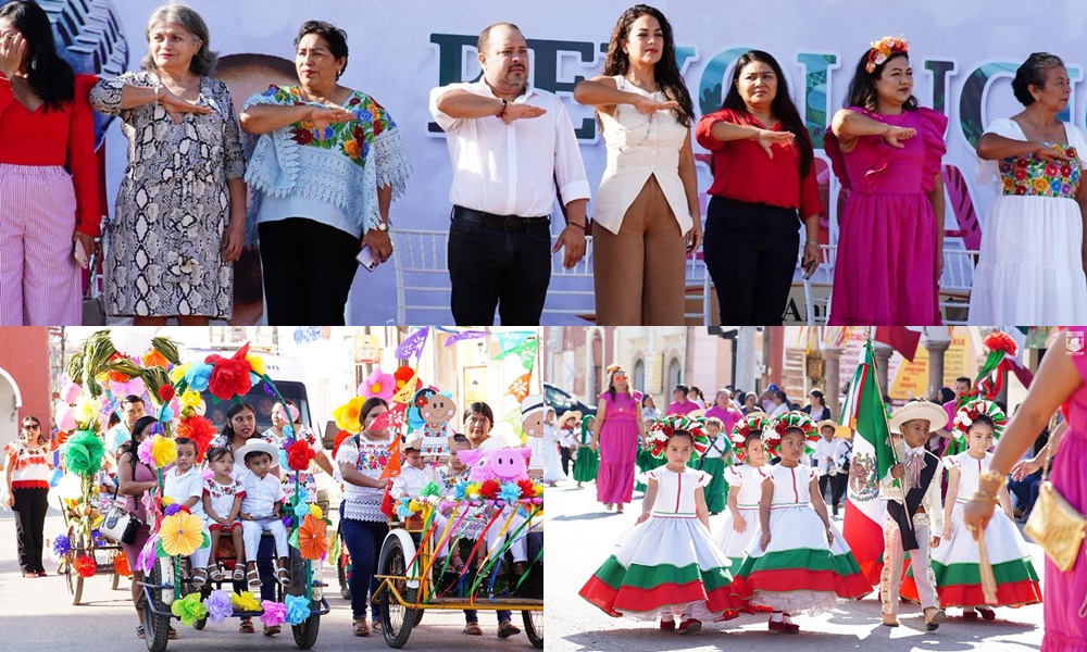 Los pequeños portaron vistosos trajes de charros, chinas poblanas, doctores, enfermeros, bomberos, militares, revolucionarios, así como el traje regional yucateco y el de adelitas.