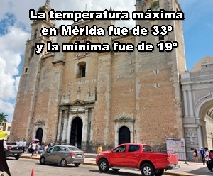 MÉRIDA: Máxima, 33º C, Poniente; mínima 19º, Oriente