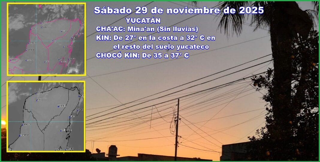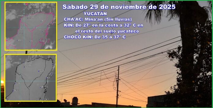 MÉRIDA, Yucatán, sábado 29/11/25.– Hoy sabadito, último de la Feria de Xmatkuil, se espera buen tiempo con Sol en el día y sin lluvias en Mérida. Se pronostican temperaturas máximas de 30 a 32º C en gran parte del estado.