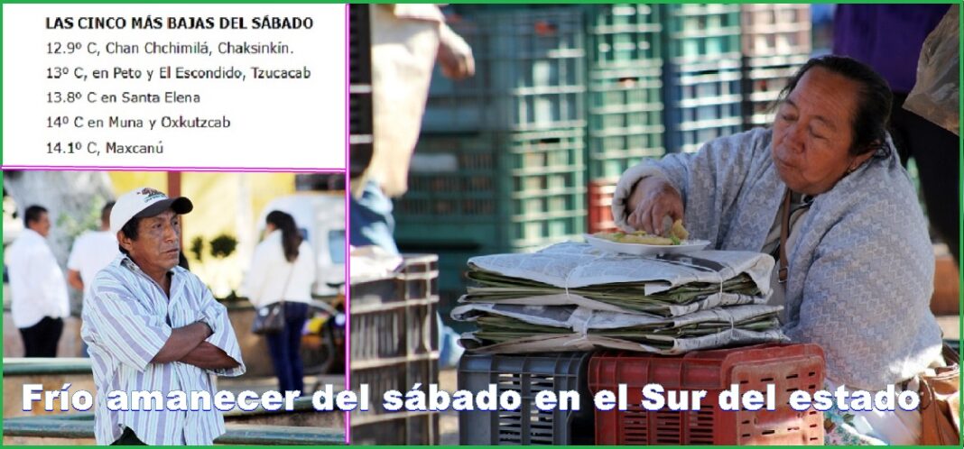 De acuerdo con el IC Juan Vázquez Montalvo, vocero de CIAFEME-CHMDY, la temperaturas mínimas registradas al amanecer ayer sábado, fueron de 17.7º C en el puerto de Las Coloradas, al Noreste yucateco, a los 12.9º de Chan Chchimilá, con datos de estaciones de la UADY, CIAFEME, CHMDY, CONAGUA y PCCEY.