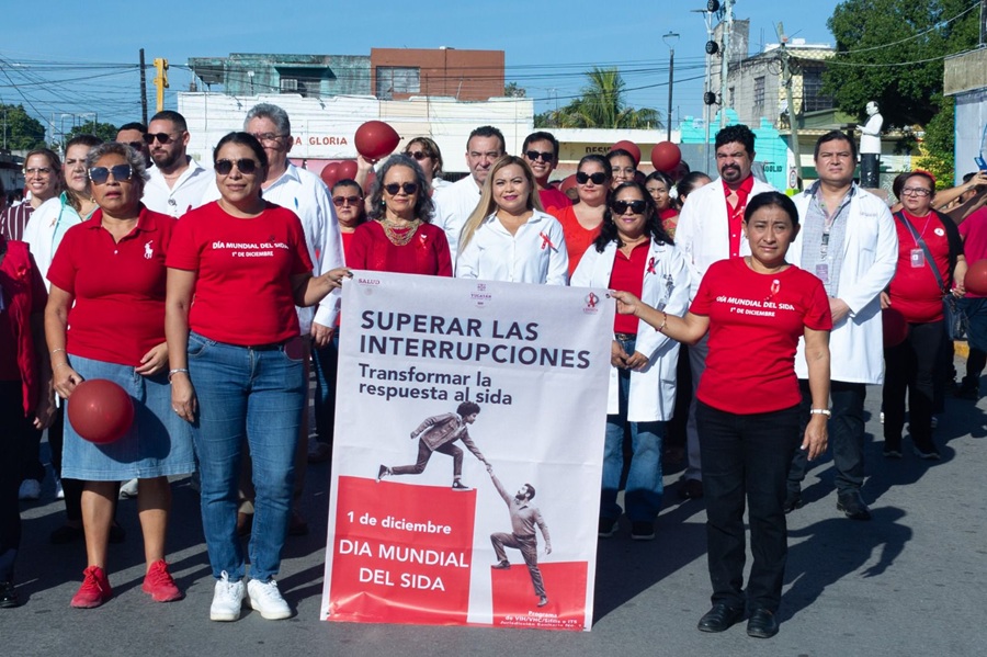 KANASÍN, Yucatán, lunes 01/12/2025.- Con una caminata integrada por estudiantes y funcionarios, un “sketch” a cargo de alumnos del COBAY de Kanasín y una Feria de la Salud, esta mañana se conmemoró el Día Mundial del SIDA en este municipio, evento encabezado por el alcalde Edwin Bojórquez Ramírez, quien destacó que su administración le apuesta fuerte al tema de la prevención y la educación para erradicar esa enfermedad, ademas de reiterar de lucha contra el estigma y la discriminación que enfrentan quienes tienen el virus.