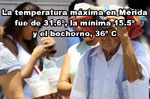 MÉRIDA: Máxima, 31.6º C, Nororiente; mínima 15.5º, Norte; bochorno, 36º C