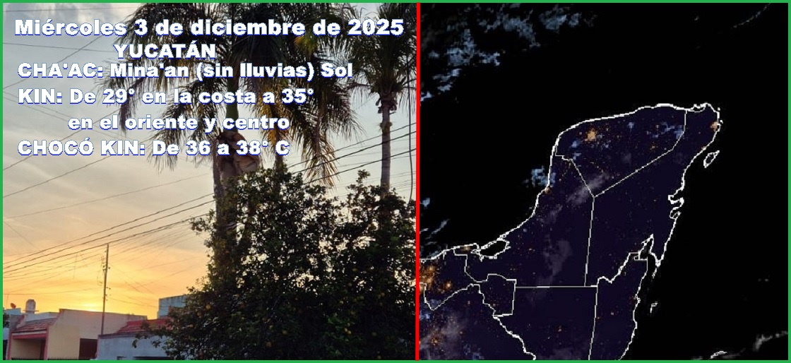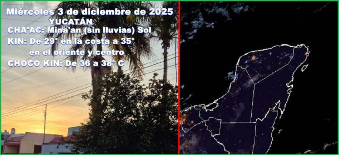 MÉRIDA, Yucatán, martes 02/12/25.- Hoy miércoles se espera ambiente caluroso, mucho Sol, pues habrá cielo de mayormente despejado a medio nublado y NO hay potencial de lluvias ni en Mérida ni en el resto del estado.