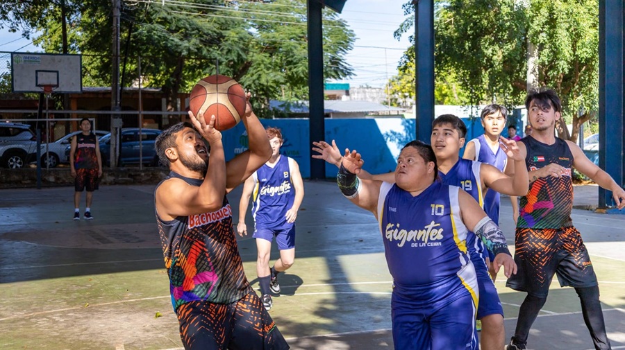 MÉRIDA, Yucatán, domingo 07/12/2025.- Como parte de las actividades de la Semana “La inclusión, contigo es mejor”, se llevó a cabo en las instalaciones del Centro Ocupacional y Recreativo La Ceiba un encuentro amistoso de básquetbol en el que participaron personas con diferentes discapacidades de los equipos Gigantes de la Ceiba y Bachoqueros.