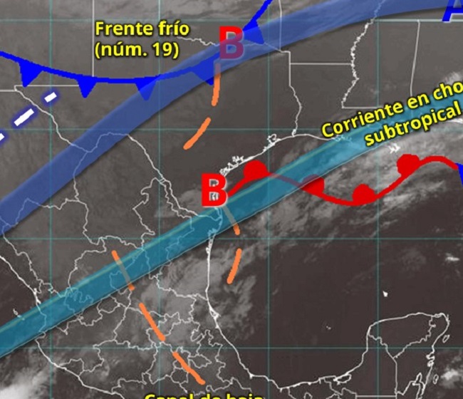 CAMPECHE Y QUINTANA ROO: Debido a una vaguada sobre la Península de Yucatán, se espera aumento de nublados con y habría tormentas en el centro de Quintana Roo, así como chubascos en el centro y sur de Campeche. Los vientos serán del este-sureste, pero en la tarde virarán al noroeste, de 15 a 20 km/h y rachas de 40 km/h en zonas costeras.