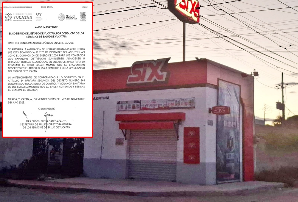 MÉRIDA, Yucatán, lunes 08/12/2025.- Tras ser exhibidos por no dar la autorización para ampliar la venta de bebidas alcohólicas los domingos de diciembre, en la Secretaría de Salud y el Diario Oficial se sacaron de la manga un supuesto aviso, donde no solo aceptan su estupidez sino que además la evidencian con un documento plagado de errores que no cometería ni siquiera un niño de primaria.