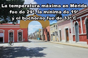 MÉRIDA: Máxima, 29º C, Oriente y Sur; mínima 19º, Oriente; bochorno, 33º C