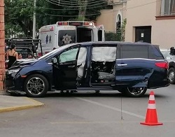 MÉRIDA, Yucatán, martes 09/12/25.- Al menos seis personas resultaron lesionadas, entre ellas un bebé, porque el chófer de un vehículo Nissan Versa se voló un alto en el cruce de las calles 22 y 23 y chocó contra una camioneta Honda, en la colonia García Ginerés.