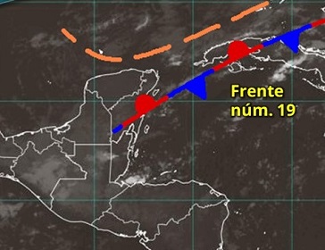 Aunque el frente frío estacionario 19 (quinto que afectó a Yucatán) estará desde el suroeste hasta el noreste de la Península de Yucatán, no se esperan lluvias y la sensación térmica será de 34 a 36º C.