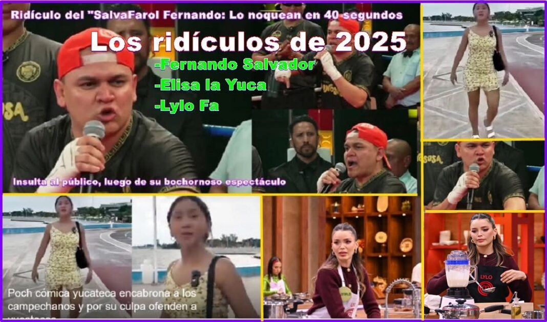 MÉRIDA, Yucatán, lunes 15/12/25.– Por mérito propio, sin ninguna competencia real y por sus “ignorantadas” faroleadas y payasadas, Fernando Salvador, Elisa la Yuca y Lylo Fa hicieron los peores ridículos el año: Nadie les quita esa muy merecida designación.