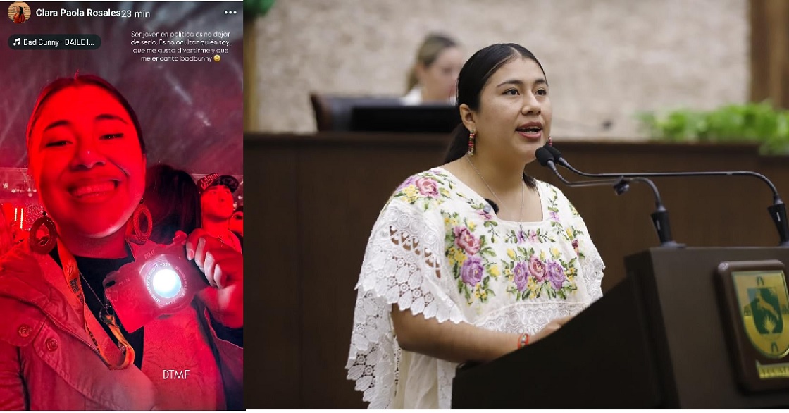 MÉRIDA, Yucatán, lunes 22/12/25.- La culpa no es del indio, sino del que lo hace su compadre: Un poco de dinero y fama marean a la platanera diputada chairomorenaca Clara Rosales, quien presume que es fan de chorlito de Bad Bunny.