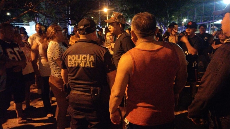 MÉRIDA, Yucatán, miércoles 24/12/2025.- Agentes de la Secretaría de Seguridad Pública (SSP) intervinieron en la Hacienda San Diego Tixcacal, donde más de 40 personas de la Hacienda San Diego Tixcacal amenazaron con “quemar” a una persona identificada como Luis Quintal, quien los habría defraudado con canastas navideñas por unos 400 mil pesos.