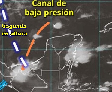 Se espera cielo de medio nublado a nublado, lluvias con descargas eléctricas en el Sur y Centro de Quintana Roo y en el Norte y Centro de Campeche, debido a un canal de bajas presiones en el sureste del país, a aire marítimo y a inestabilidad en la tropósfera alta.