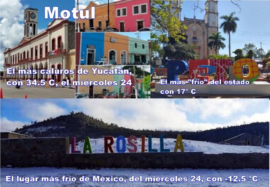 PRECISIÓN: Hasta ahora la temperatura más baja del año es de -23º C que registró Villa Ahumada, Chihuahua, el sábado 11 de enero, en tanto que la de Yucatán es de 9.5º, registrada en Muna, el sábado 25 de enero.