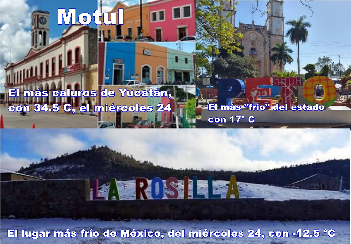 MÍNIMAS: Yucatán, 17º, Peto; México,-12.5º, La Rosilla, Durango