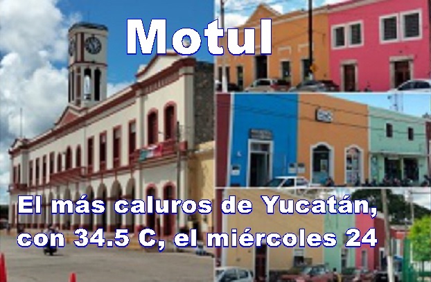 MÉRIDA, Yucatán, jueves 25/12/25.- Por segundo día seguido, ayer miércoles Motul volvió a ser el lugar más caluroso del estado, con 34.5º C (el martes registró 33º) y se quedó a 0.6º del primer lugar nacional, que fue Choix, con 35.1º C.