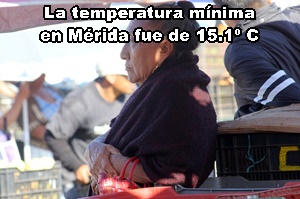 En Mérida, las temperaturas mínimas fueron de 15.1º C, en el Norte, a 15.9º C en el Oriente meridano: en el Poniente se registraron 15.5º, mientras que en el Nororiente fueron 15.6º C, y en Héroes Oriente 15.4º C.