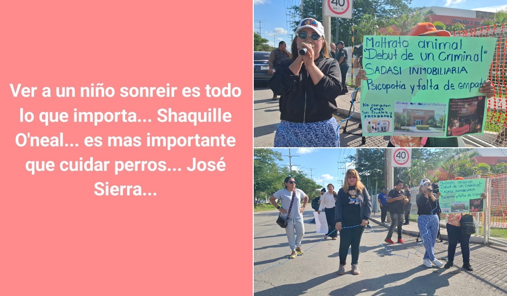 MÉRIDA, Yucatán, martes 30/12/2025.— Vecinos y activistas bloquearon la entrada del fraccionamiento Los Héroes y las oficinas de la constructora Grupo Sadasi, en protesta por la desaparición de una perrita preñada que estaba bajo resguardo de la empresa, y amenazan con estar ahí por tiempo indefinido.