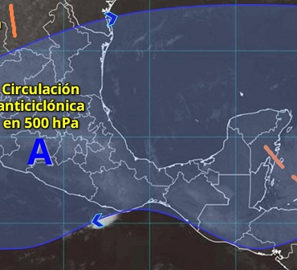 CAMPECHE Y QUINTANA ROO: Seguirá el dominio de un sistema de alta presión en la Península de Yucatán, pero, debido a aire marítimo tropical en combinación con el calentamiento diurno, se espera cielo medio nublado y habría chubascos aislados en el sur y centro de Quintana Roo y no lloverá en Campeche. El ambiente será de cálido a caluroso en el día y de templado a fresco en la noche. El viento soplará del este-sureste, aunque viraría al noreste, de 15 a 25 km/h y rachas mayores a 40 km/h en costas.