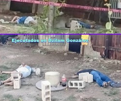 CINCO: El lunes 5 de enero de este año, en la tarde, sicarios ejecutaron en Dzilam González a Juan Carlos V.G. (a) “Nato Jr. o Juanito” de 22 años de edad, al adolescente Ariel K.R., de 15 años de edad y dejaron herido a Luis K.T. de 30 años (a) “Gary”, quien murió minutos después de haber ingresado en un hospital en la ciudad de Mérida.