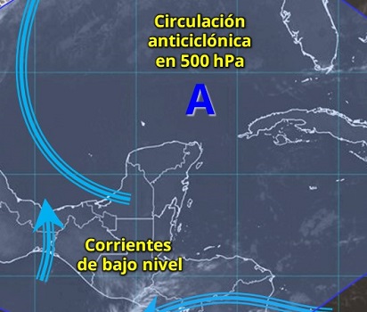 CAMPECHE Y QUINTANA ROO: Debido a la entrada de aire marítimo tropical y al calentamiento diurno se espera cielo de parcialmente nublado a medio nublado, habría lloviznas aisladas en el norte, centro y sur de Quintana Roo y no habrá lluvias en Campeche. El ambiente será caluroso durante el día y los vientos soplarán del este-sureste, de 15 a 25 km/h, con rachas mayores a 40 km/h.