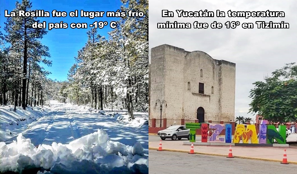 MÍNIMAS: Yucatán, 16º C en Tizimín; México, -10.9º C, El Vergel, Chihuahua