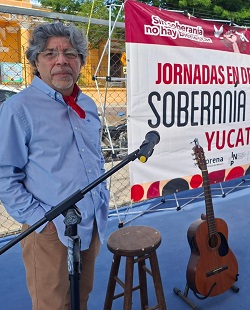 MÉRIDA, Yucatán, lunes 12/01/26.- El cantante de protesta Pepete criticó la mala organización de la jornada de Morena por la defensa del narco… perdón de la soberanía nacional, ayer en el barrio de San Sebastián.