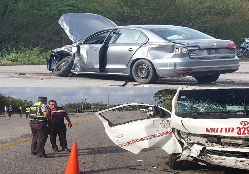 La conductora del Jetta, L.C.S. llegó al entronque de Cansahcab y tomó el libramiento que va a Tizimín, pero de manera intempestiva dio vuelta en U sobre la carretera federal y chocó de frente contra el taxi que circulaba con preferencia de paso.
