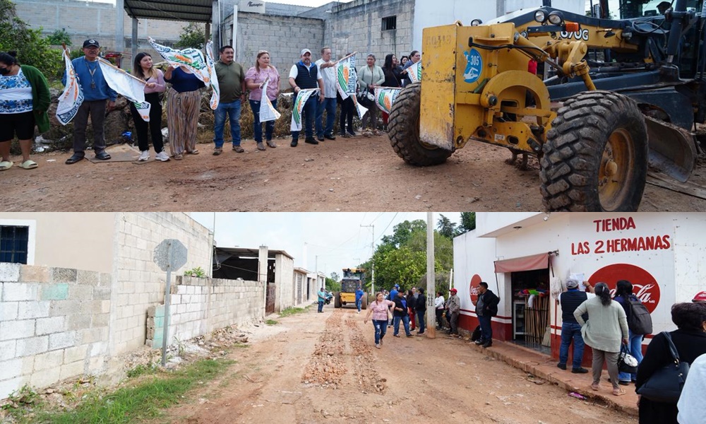 OXKUTZCAB, Yucatán, viernes 16/01/26.- Acompañado de los vecinos, el alcalde de Oxkutzcab, Juan José Martín Fragoso, dio el banderazo de inicio a la pavimentación de la calle 38, específicamente en los tramos entre las calles 31, 33 y 35 de la colonia Esperanza. De acuerdo con el presidente municipal, esta obra se ejecuta íntegramente con recursos propios del municipio.