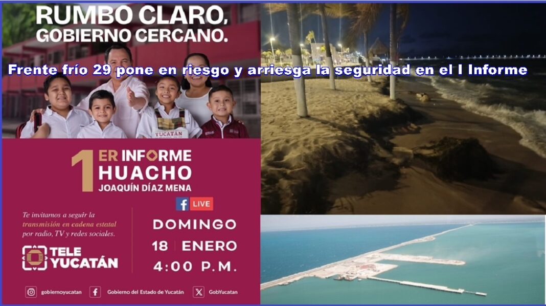 MÉRIDA, Yucatán, viernes 16/01/26.- De seguir con la idea descabellada de dar el I Informe de Gobierno en el Puerto de Altura, las condiciones serán adversas, pues ese día azotará otro “Norte”, de modo que habrá mucho viento, lluvias y frío.