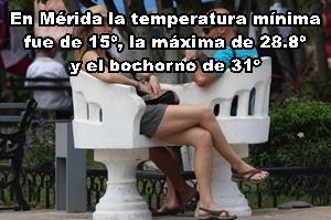 MÉRIDA: Máxima, 28.8º C, Nororiente; mínima 15º, Norte; bochorno, 31º