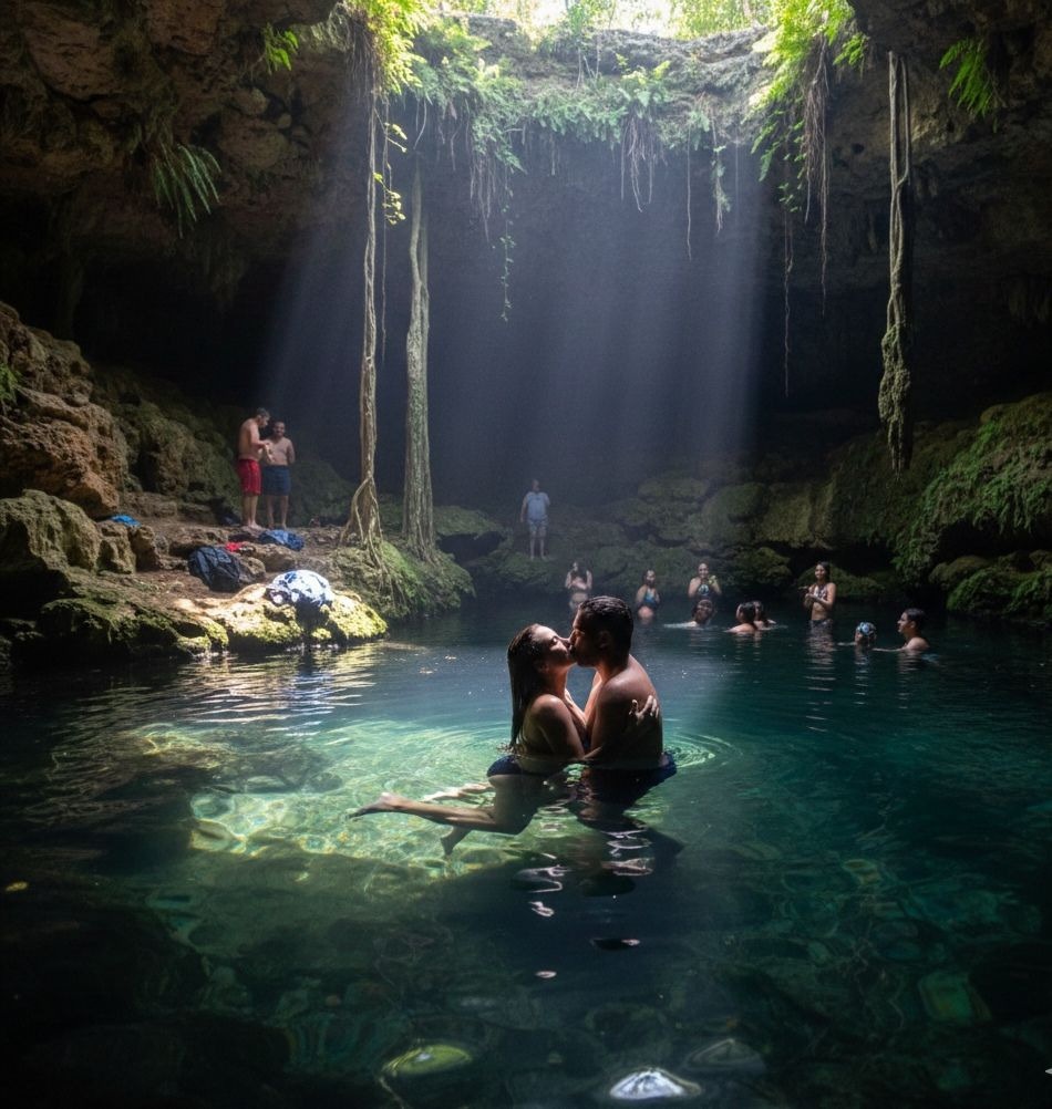 VALLADOLID, Yucatán, domingo 18/01/2026.- Detienen a un turista que dijo ser de Suiza, y su acompañante una poblana, porque creyeron que las cristalinas aguas del cenote Zací eran un motel de paso e hicieron dzis delante de la gente, incluyendo menores de edad.