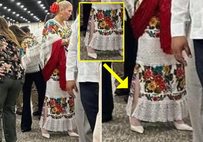 MÉRIDA, Yucatán, martes 20/01/26.- ¿Demasiado huira? ¿bastante caballona o demasiado hombruna? Como sea… el caso es que la senadora Verónica Camino Farjat, más conocida como #MissTraición, le dio en la madre al tradicional terno yucateco.