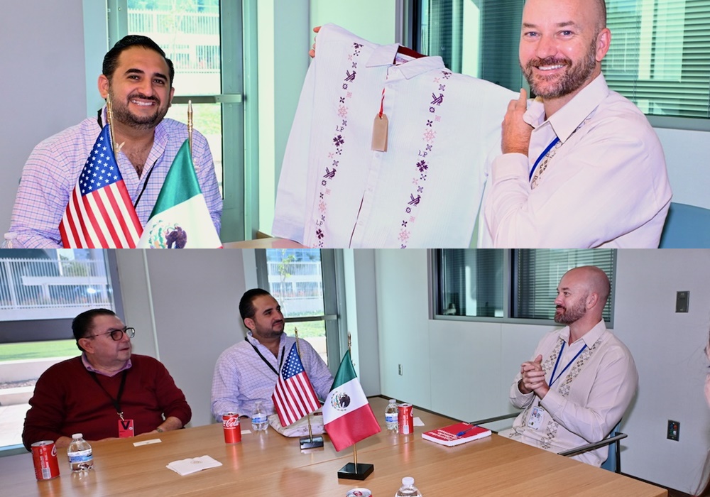 Como muestra de cortesía y aprecio, el CETUR le obsequió al Cónsul General una guayabera elaborada por la Casa Leny Pool, originaria del Pueblo Mágico de Motul, pieza representativa del talento, la identidad y la tradición textil de Yucatán.
